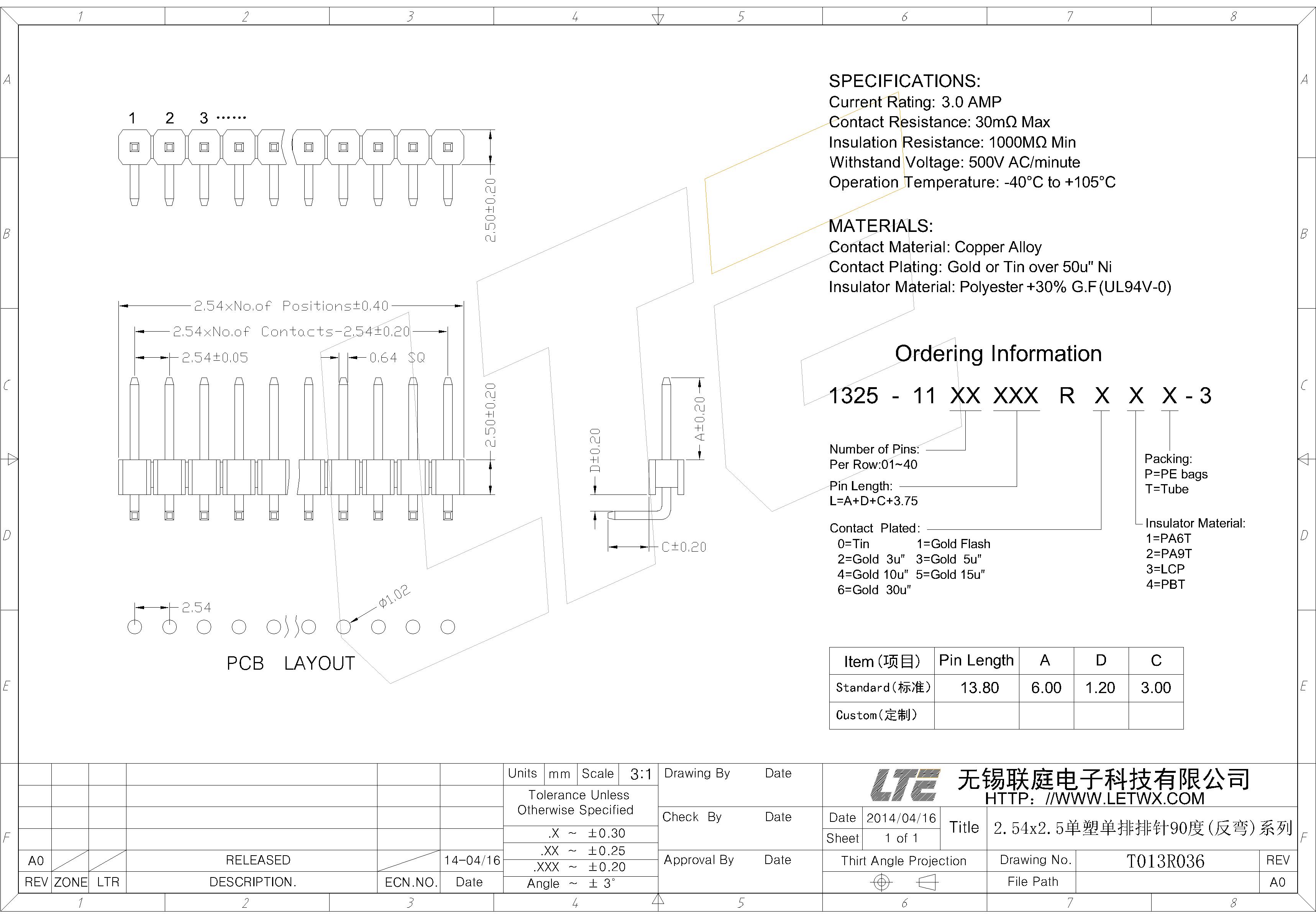 塑胶材质(Insulator Material): 树酯+玻纤(Polyester+30% G.F) UL94V-0