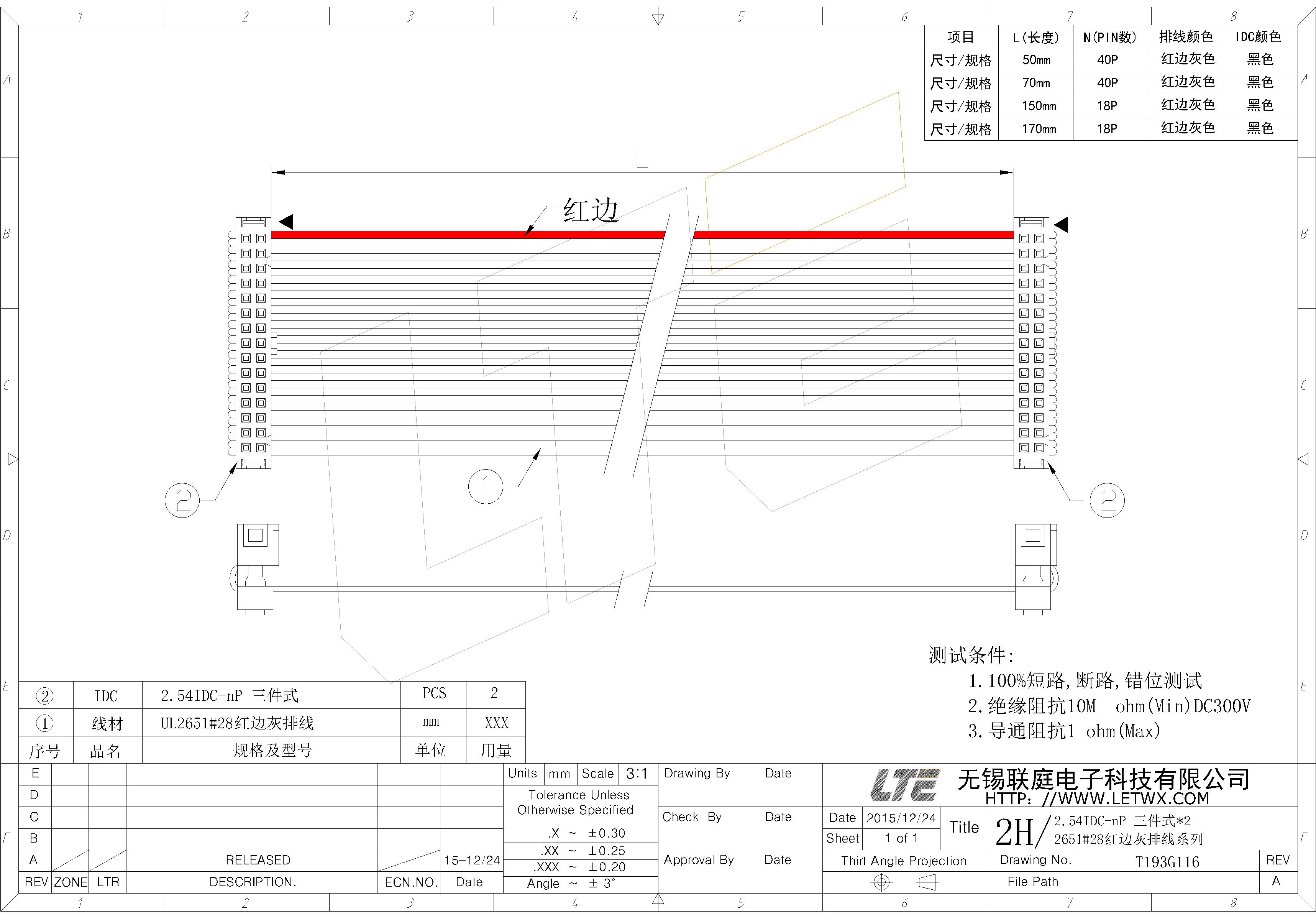 UL2561红边灰排线