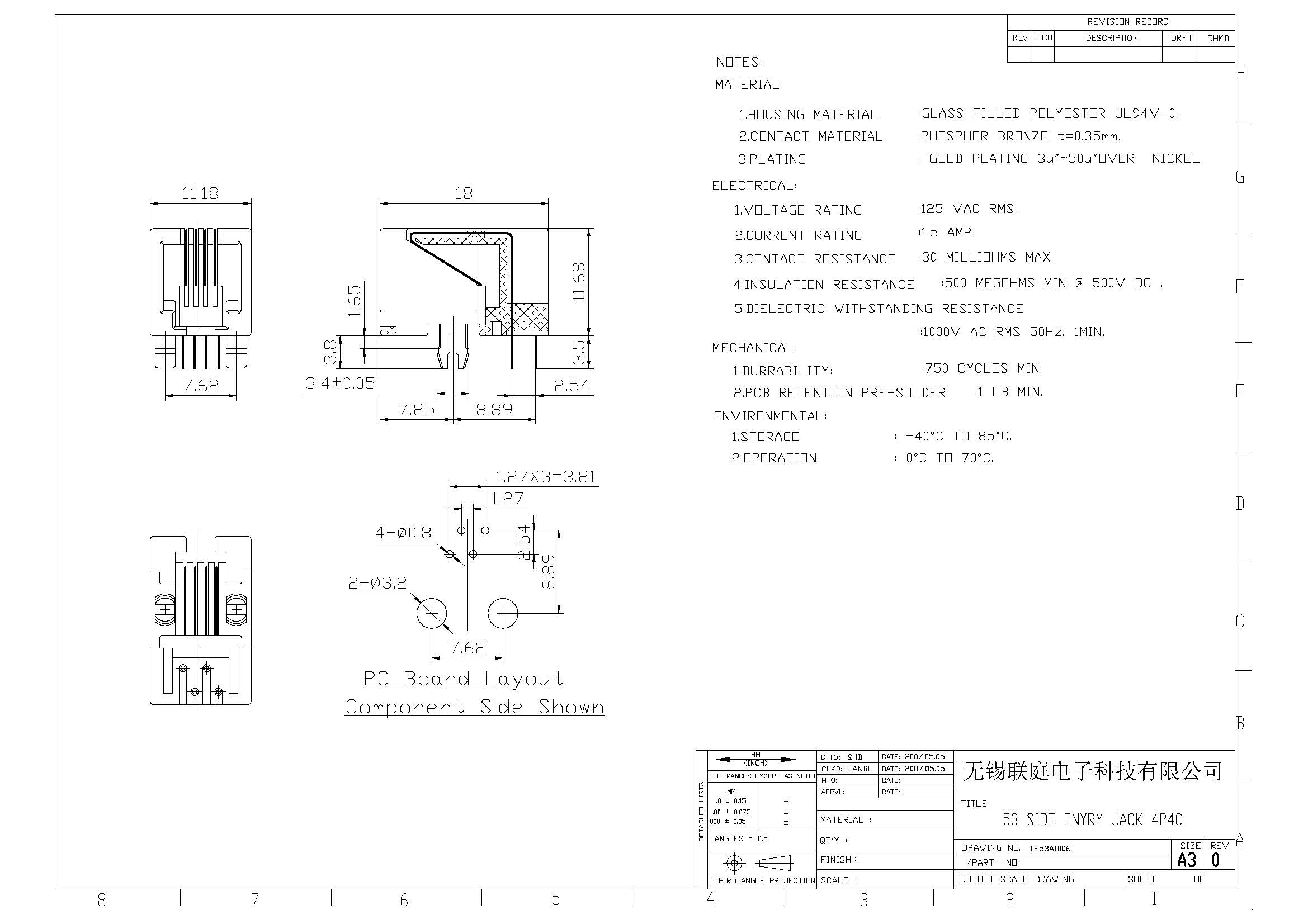 塑胶材质(Insulator Material): 树酯+玻纤(Polyester+30% G.F) UL94V-0